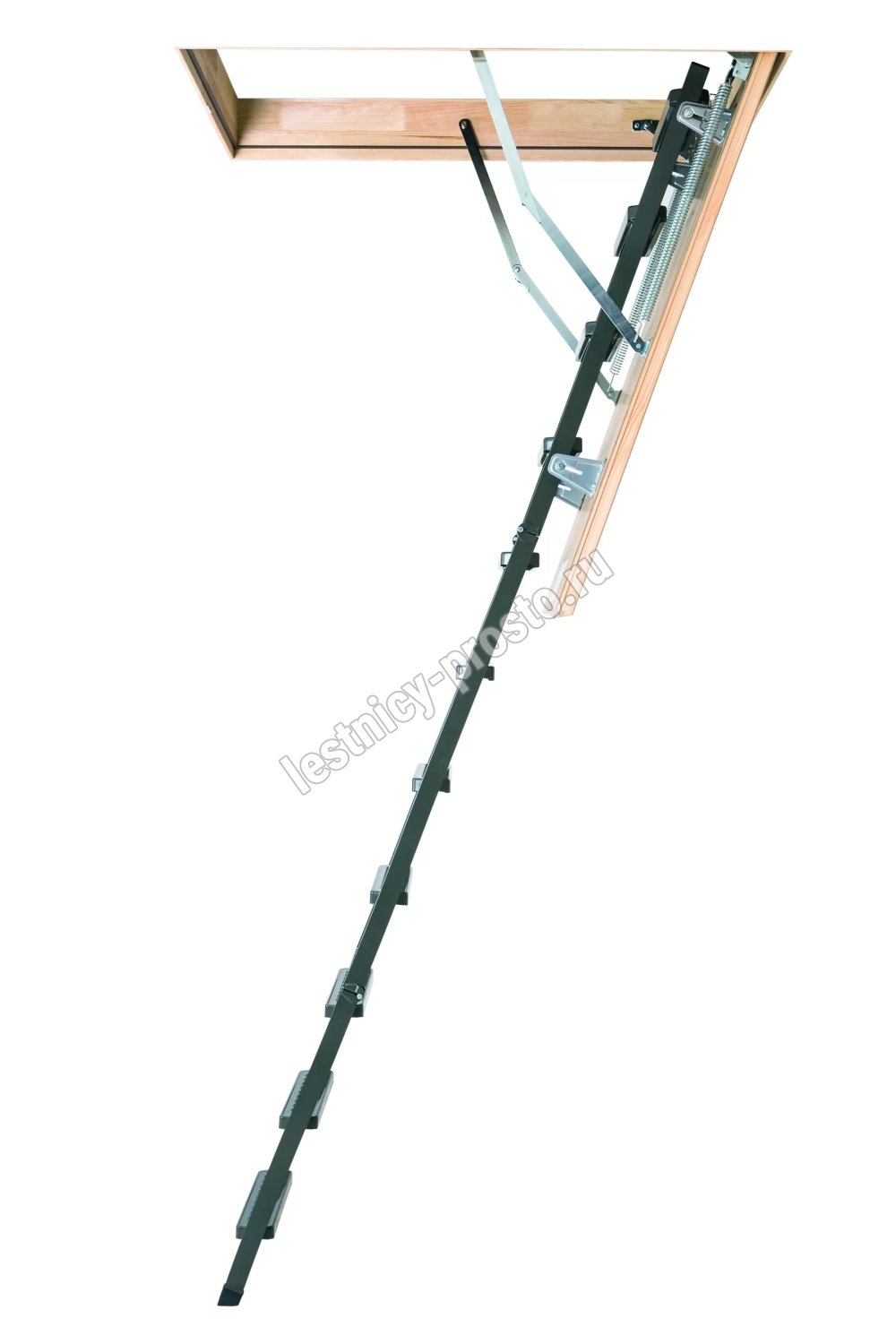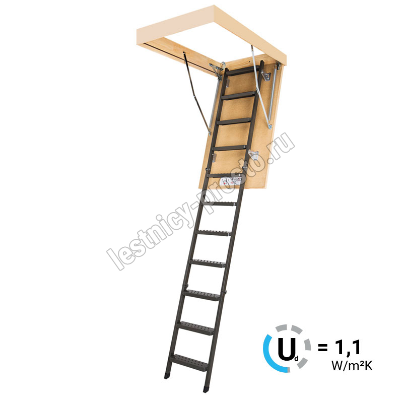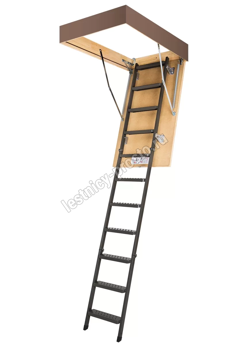 Установленные в лестнице угловые петли-шарниры нового образца придают ей высокую прочность и надежность, а также предохраняют короб от возможной деформации. Основное преимущество чердачной складной металлической лестницы LMS сводится к ее небольшим габаритам при сохранении высокой функциональности, прочности, надежности и эстетичности конструкции. Монтировать лестницу очень просто, для этого не придется затрачивать много времени и сил.