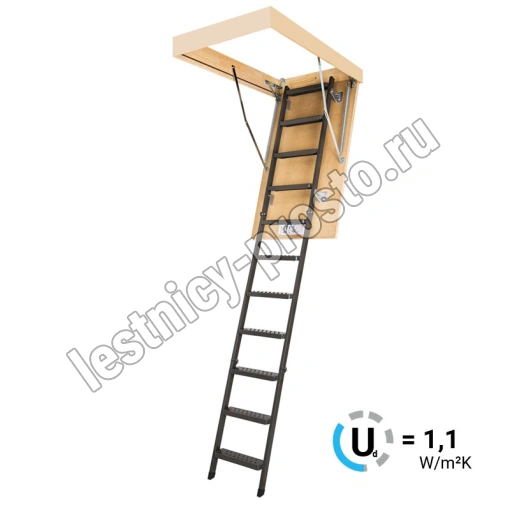 Чердачная металлическая лестница LMS – это надежная складная конструкция, состоящая из марша и термоизоляционной крышки, изготовленной из ДВП и окрашенной в бежевый цвет. Герметичность всей конструкции достигается благодаря утеплению крышки люка и контурному уплотнению по периметру, что предотвращает возможные теплопотери. Чердачную лестницу очень легко разложить и сложить благодаря наличию специального стержня с четырехугольной насадкой.