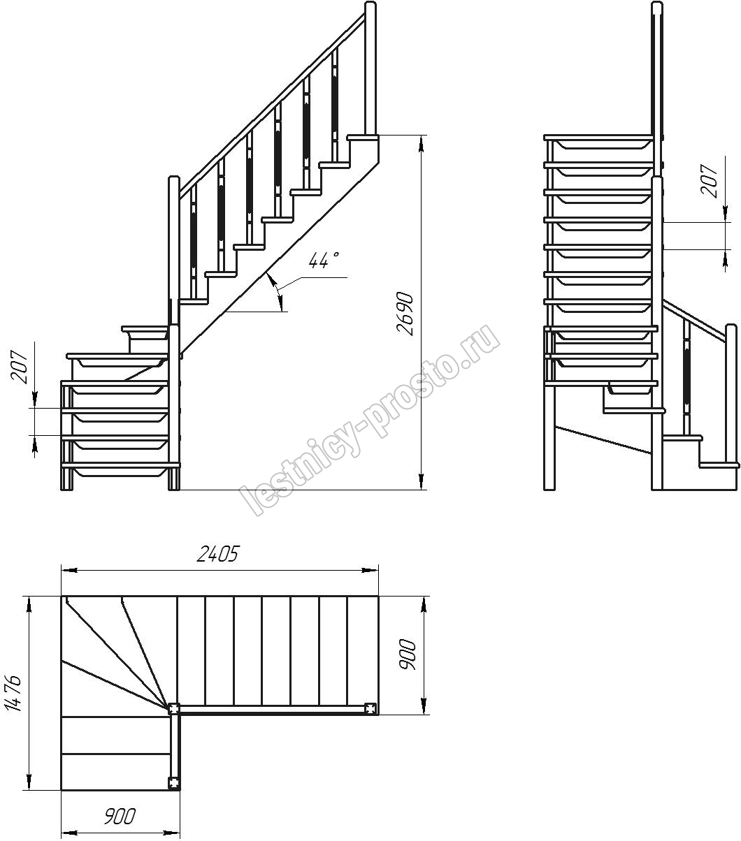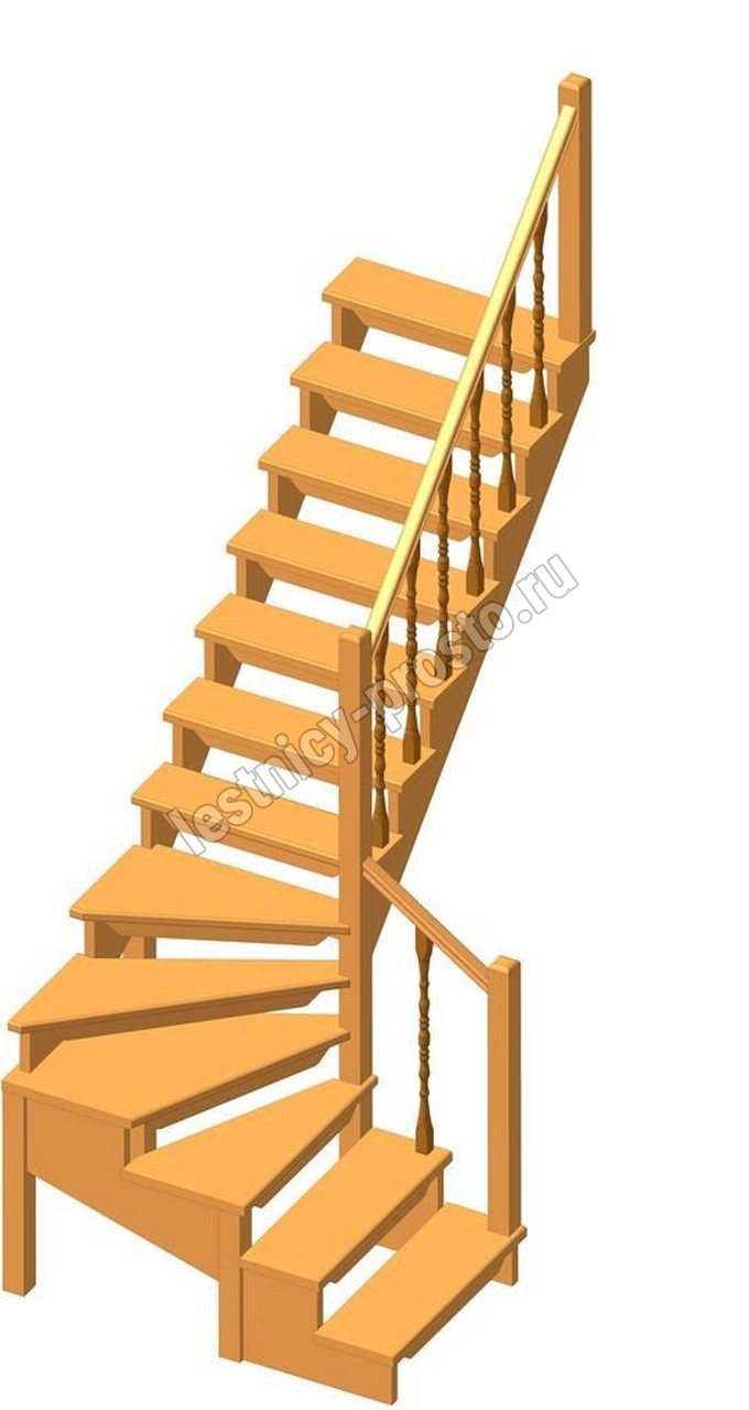 Деревянная межэтажная лестница ЛЕС-09 2690 проем 2405-900, Бук