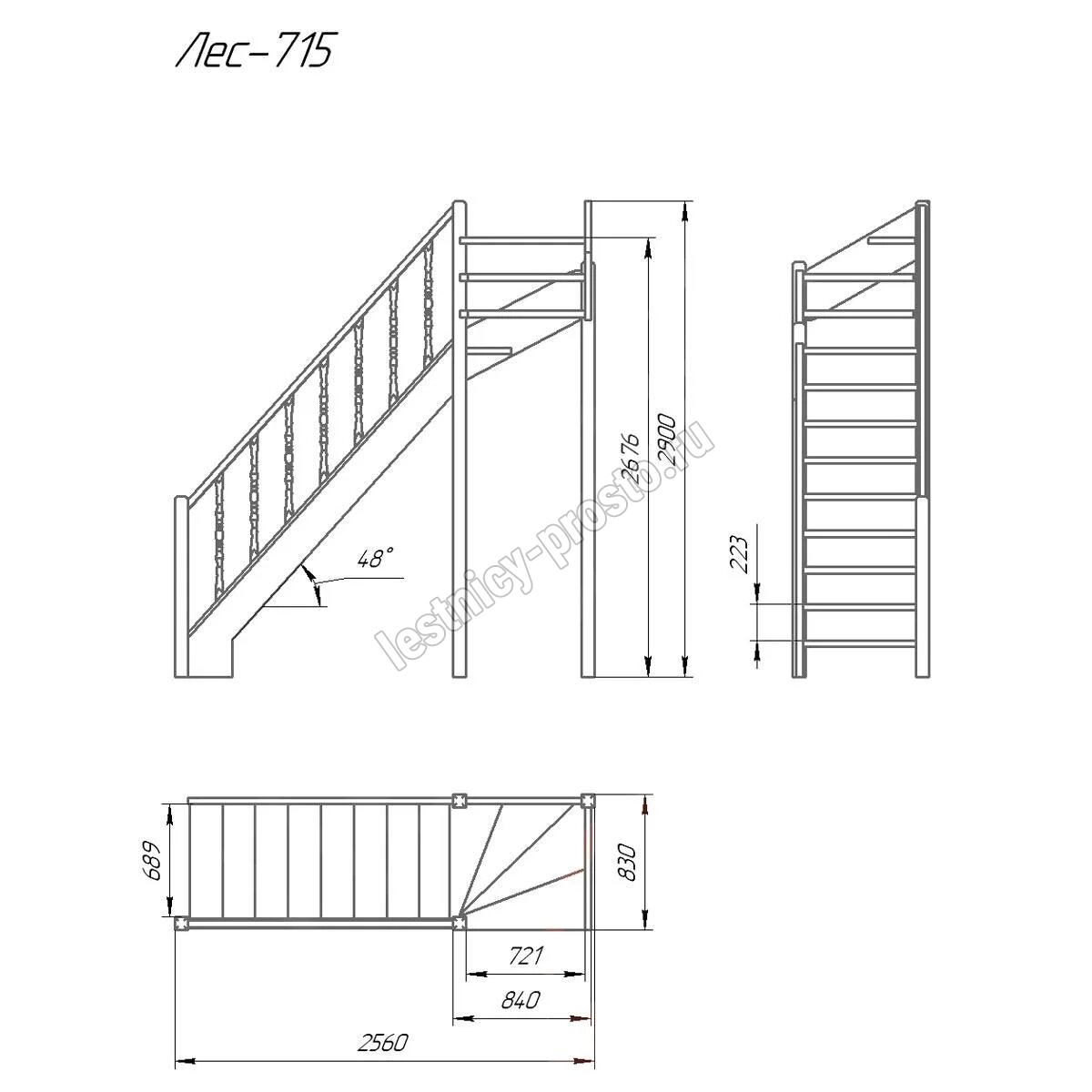 Деревянная межэтажная лестница Лес-715, Сосна