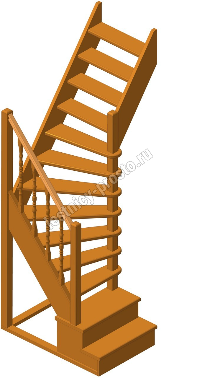 Деревянная межэтажная лестница ЛЕС-91 2925-3150 проем 1390-780, Лиственница
