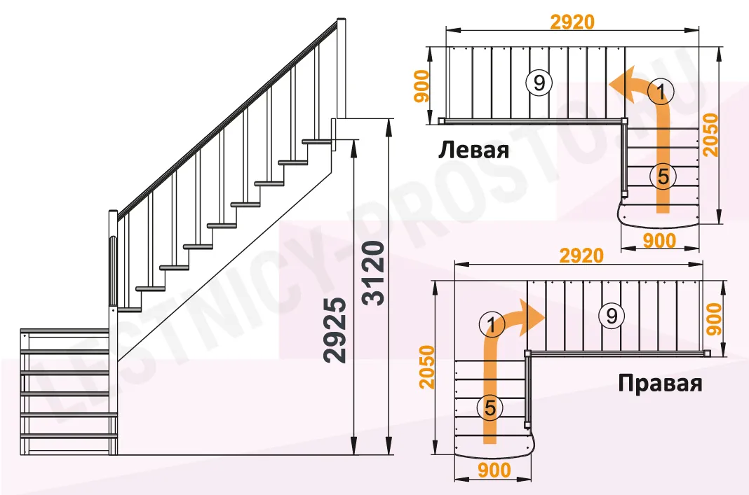 Базовая комплектация включает в себя элементы лестницы и ограждения без какого-либо покрытия. Ограждение можно заменить на любое по вашему вкусу (итоговая стоимость изменится).