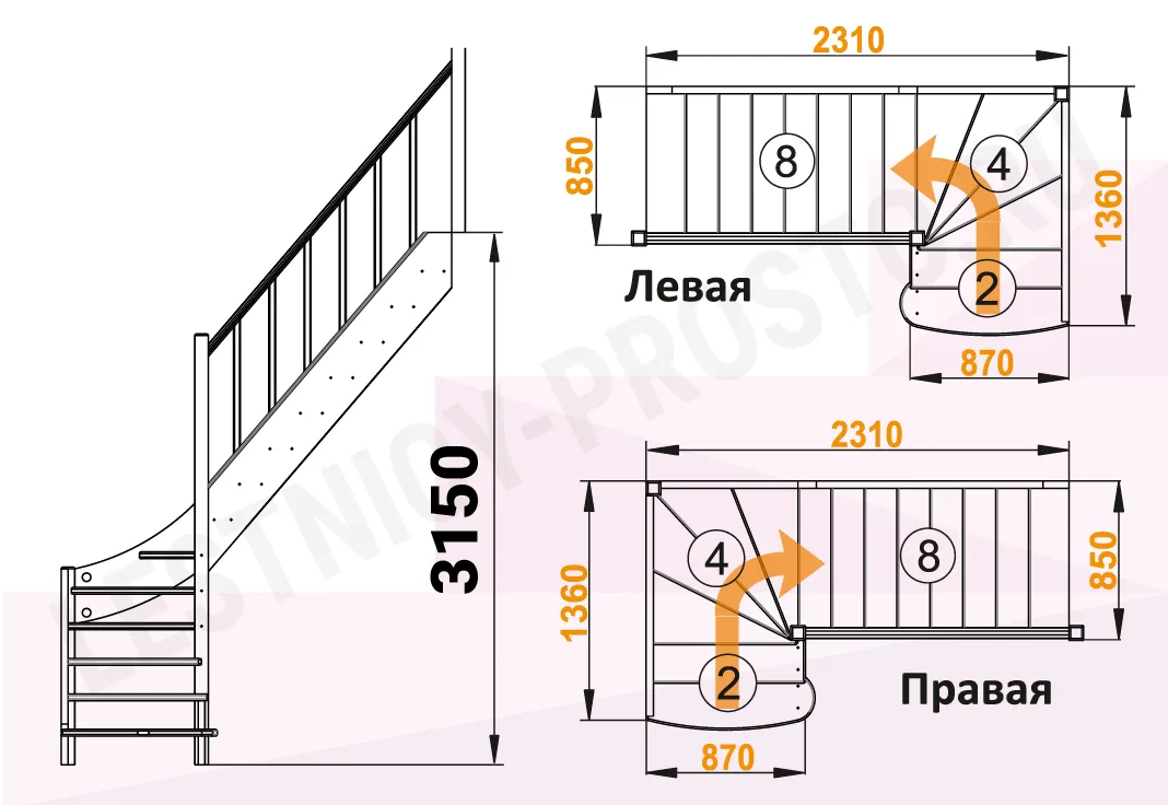 Высота лестницы 3150
