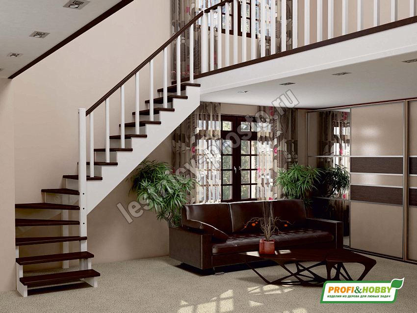 Цена указана за лестницу с буковыми ступенями и поручнем, остальные элементы изготовлены из сосны. Возможно изготовление этой лестницы целиком из бука Базовый комплект включает в себя деревянные элементы лестницы и ограждения без какого-либо покрытия.