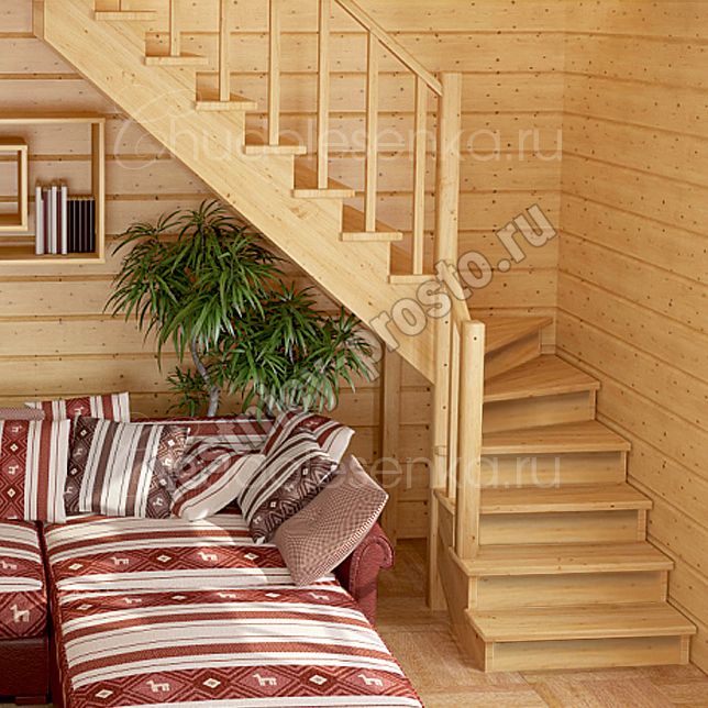 Лестница из сосны К-001М/2 под покраску с подступёнками