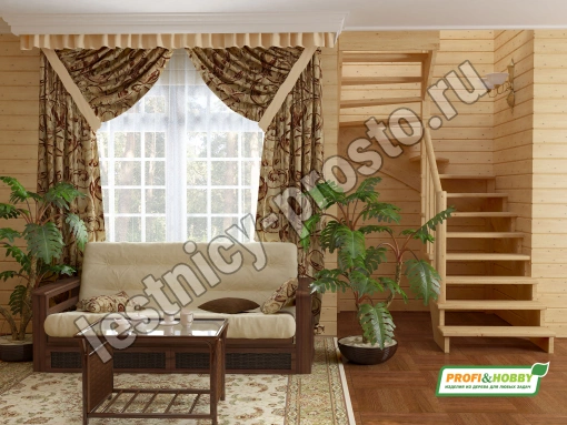 Базовый комплект включает в себя деревянные элементы лестницы и ограждения без какого-либо покрытия.