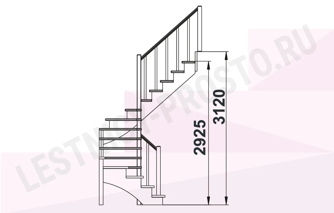 Высота лестницы 2925 - 3120 мм