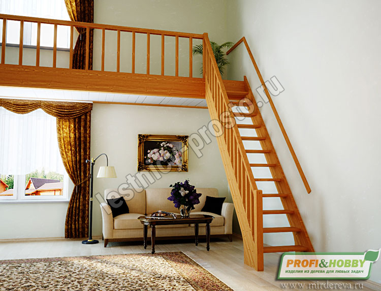 Лестница из сосны ЛС-10М под покраску с подступенками