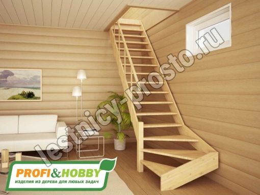 Базовый комплект включает в себя деревянные элементы лестницы без какого-либо покрытия.