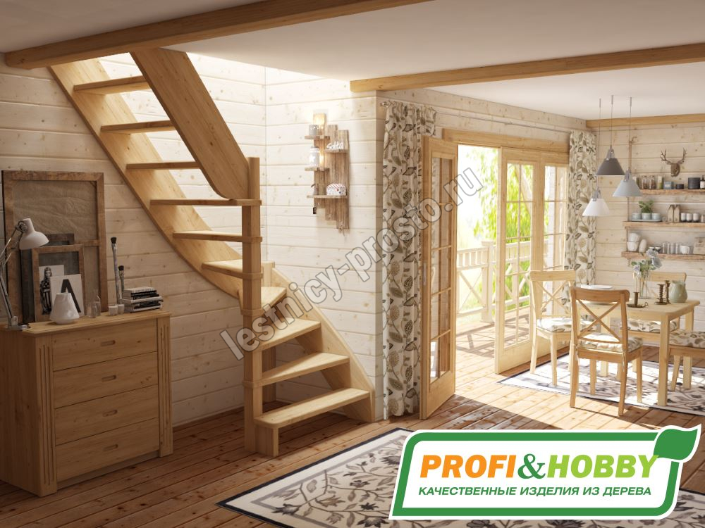 Базовый комплект включает в себя деревянные элементы лестницы без какого-либо покрытия.