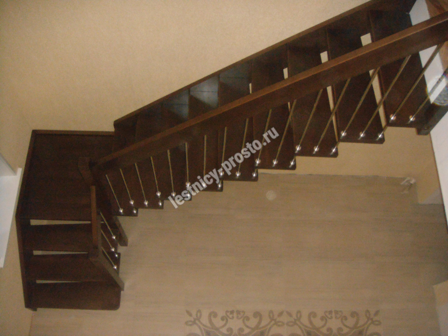 Надёжная современная лестница выполнена по немецкой технологии. Стоимость указана для лестницы с ограждением (с одной стороны); Поставляется в разобранном виде, в комплекте необходимый крепёж; Лестницу можно собрать самостоятельно; Так же, вы можете заказать услугу монтажа нашими специалистами; 4 вида породы дерева для изготовления лестницы: сосна, бук, ясень, дуб; возможна комбинированная лестница: из сосны (ступени бук, ясень, дуб); Деревянные элементы без какого-либо покрытия, отшлифованы, готовы к покраске. За дополнительную плату, вы можете изменить любые параметры, а именно: увеличить глубину ступени; увеличить ширину марша до 900 мм. и выше; заказать подступенки к лестнице; заказать отделку перекрытия (между 1-м и 2-м этажами); изготовить дополнительный промежуточный марш; заказать ограждение 2-го этажа; покраска в любой цвет или несколько цветов или покрытие защитными средствами; дополнение балясины из нержавеющей стали деревянными элементами; покраска балясин из нержавеющей стали порошковой краской в цвет RAL.