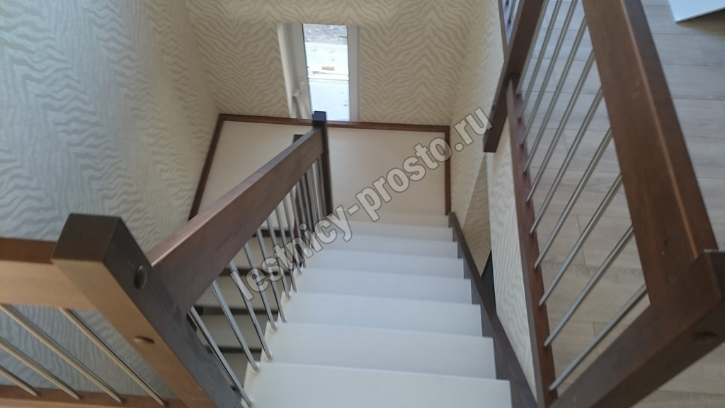 Надёжная современная лестница выполнена по немецкой технологии. Стоимость указана для лестницы с ограждением (с одной стороны); Поставляется в разобранном виде, в комплекте необходимый крепёж; Лестницу можно собрать самостоятельно; Так же, вы можете заказать услугу монтажа нашими специалистами; 4 вида породы дерева для изготовления лестницы: сосна, бук, ясень, дуб; возможна комбинированная лестница: из сосны (ступени бук, ясень, дуб); Деревянные элементы без какого-либо покрытия, отшлифованы, готовы к покраске. За дополнительную плату, вы можете изменить любые параметры, а именно: увеличить глубину ступени; увеличить ширину марша до 900 мм. и выше; заказать подступенки к лестнице; заказать отделку перекрытия (между 1-м и 2-м этажами); изготовить дополнительный промежуточный марш; заказать ограждение 2-го этажа; покраска в любой цвет или несколько цветов или покрытие защитными средствами; дополнение балясины из нержавеющей стали деревянными элементами; покраска балясин из нержавеющей стали порошковой краской в цвет RAL.