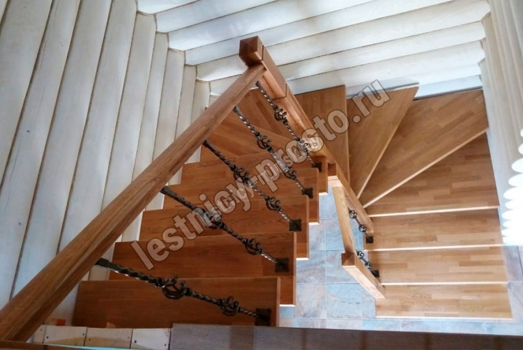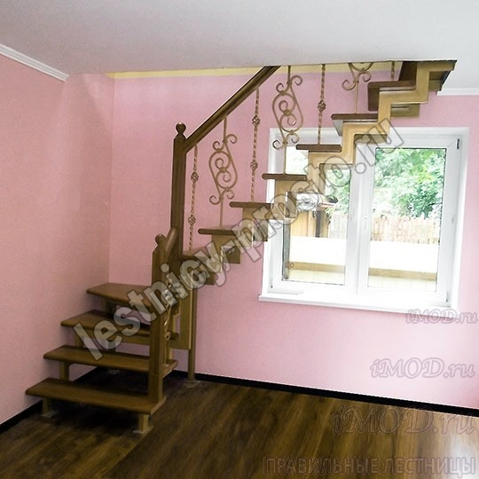 Деревянные элементы: столбы и поручень в базовой комплектации без окрашивания и какого-либо покрытия, металлические элементы окрашены в цвет каркаса лестницы.