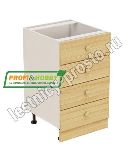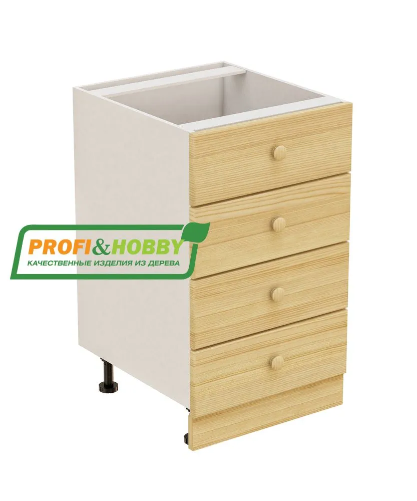 Тумба 4 ящика 500х530х720 + фасад сосна бесцветный акриловый лак