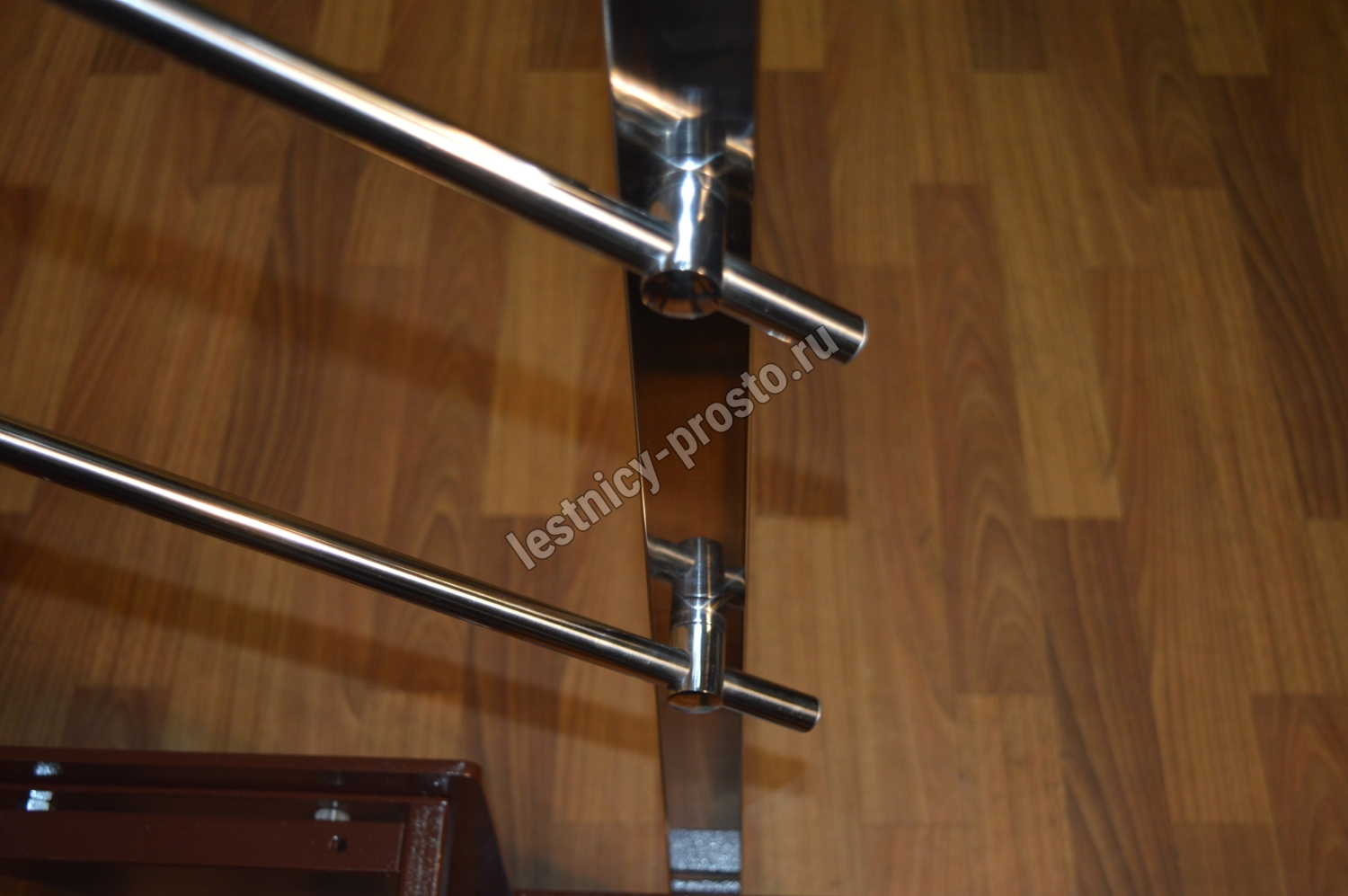 Ограждение типовой лестницы крашеное или из полированной нержавеющей стали. Базовый материал ступеней: террасная доска