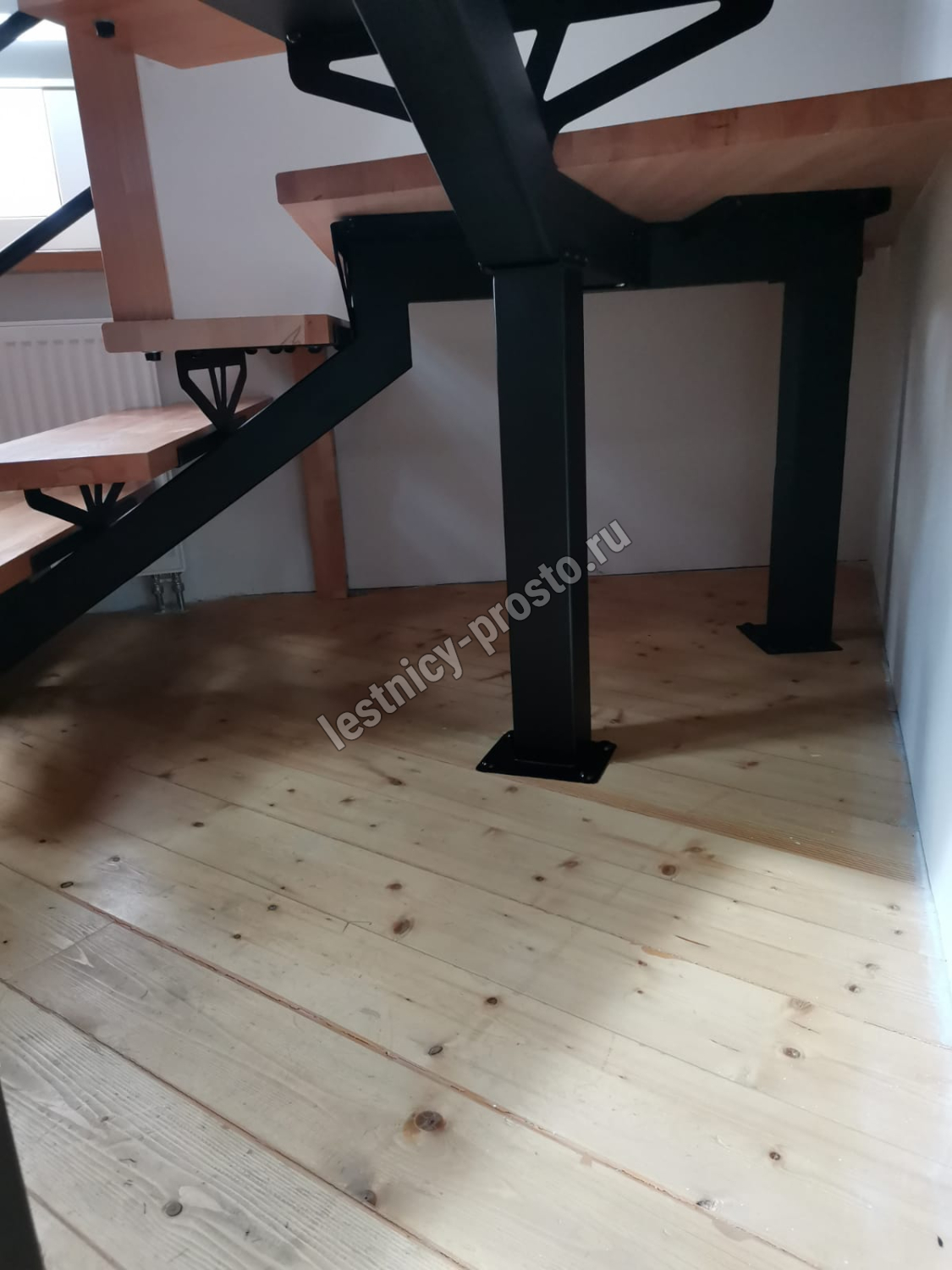 Конструкция представляет собой стальной монокосоур, на который крепятся ступени.