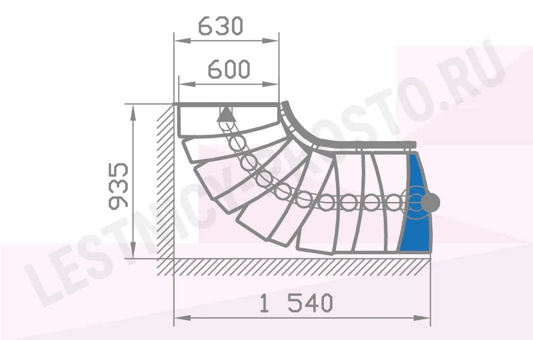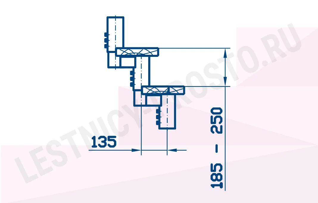 При монтаже этой лестницы, возможно регулировать высоту и глубину шага, таким образом можно получить лестницу под высоты этажа в диапазоне 2220 - 3000 мм.
