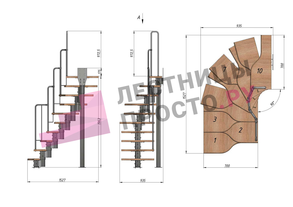 Высота лестницы 1800 - 2640 (10 ступеней) мм