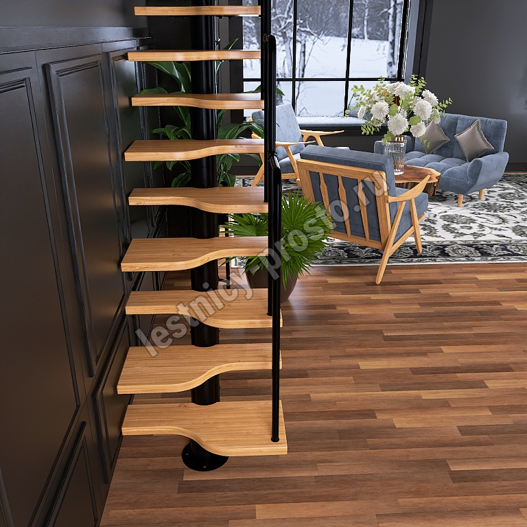 Лестница Prosto Urban Black гусиный шаг 700 мм, h216-312 см (12 ступеней), бук