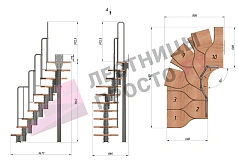 Лестница Prosto Urban Grey г-образная гусиный шаг 600 мм/ Ступени из берёзы мультиплекс