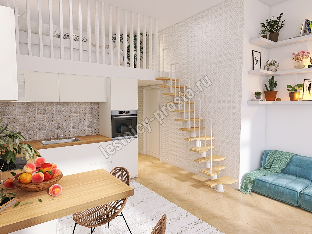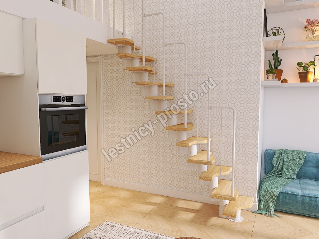 Лестница Prosto Urban White гусиный шаг 700 мм, h180-264 см (10 ступеней), бук