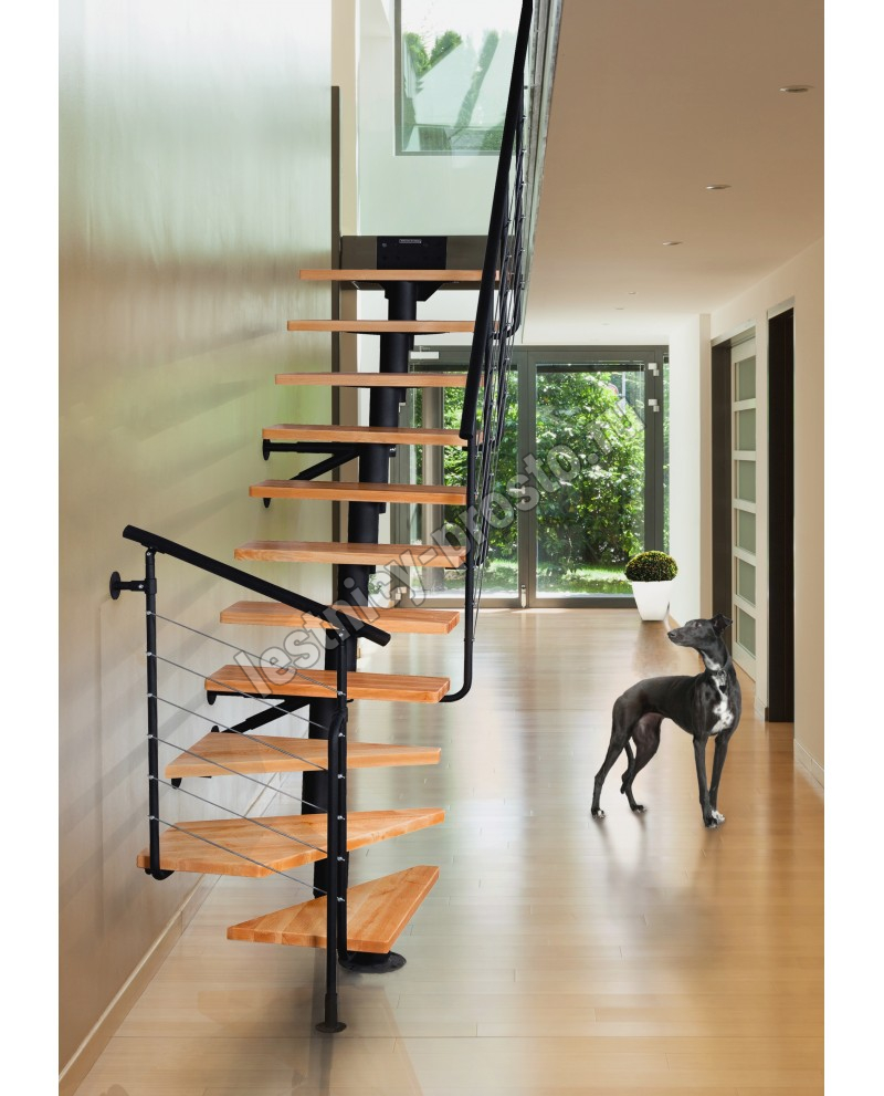 ATRIUM DIXI PLUS - это современная и удобная лестница, занимающая сравнительно мало места. В набор входят 11 конструктивных элементов и 11 ступеней из массивного лакированного дерева (8 прямых ступеней и 3 поворотные ступени). Есть возможность регулировать высоту ступеней. В комплект входят перила с вертикальными стойками и горизонтальными перегородками.