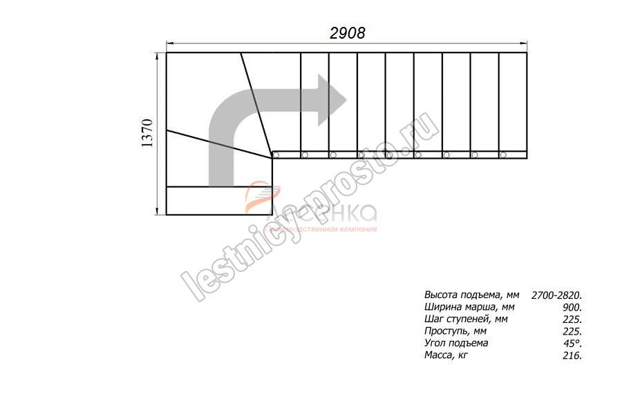Ширина марша 900 мм
