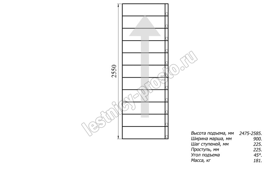 Модульная лестница Стандарт 2475-2585, Серый, Сосна, Нержавеющая сталь