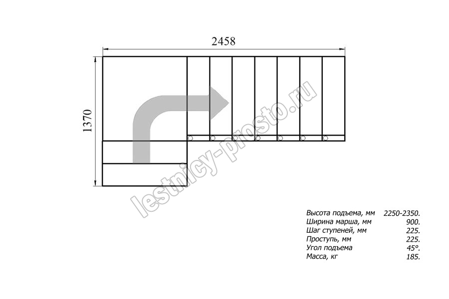 Модульная лестница Статус 225 2250-2350, Серый, Сосна, Нержавеющая сталь