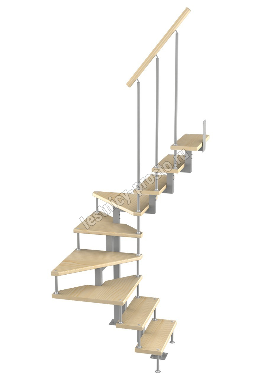 Модульная малогабаритная лестница Эксклюзив 2025-2250, Серый, Сосна, Нержавеющая сталь