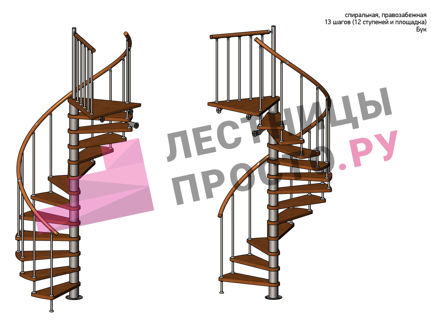 Правая, d=160см, 12 ступеней + площадка