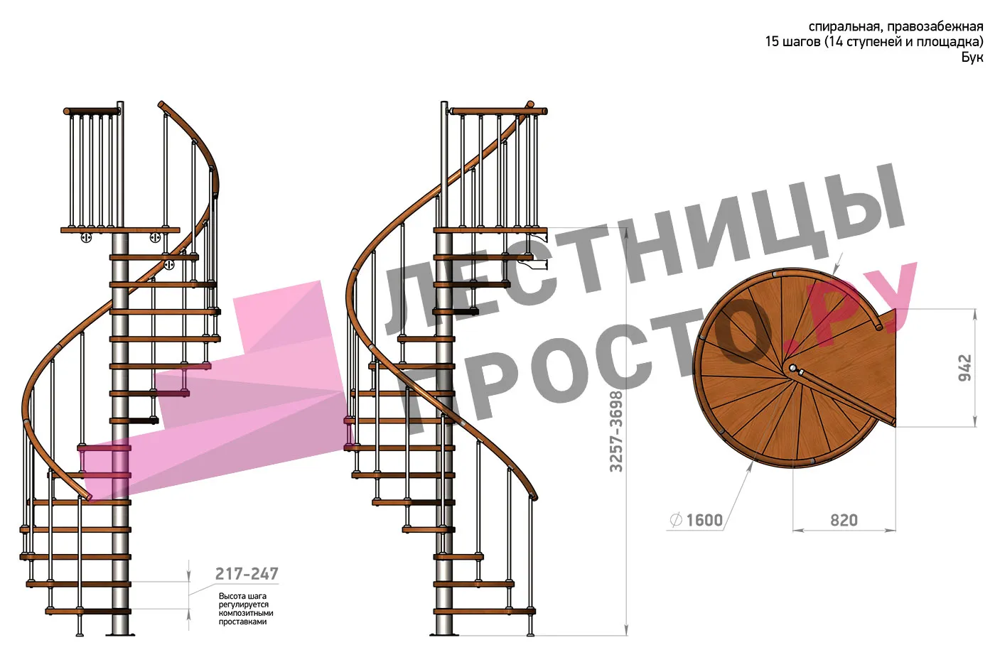 Винтовая лестница Prosto Spiral White D160см, h325.7-369.8 см, бук