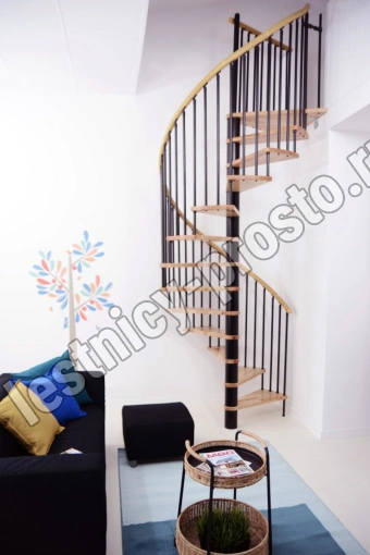 Поручень изготовлен из массива дуба в тон ступеням. Поручень и ступени лестницы покрыты износостойким защитным лаком.