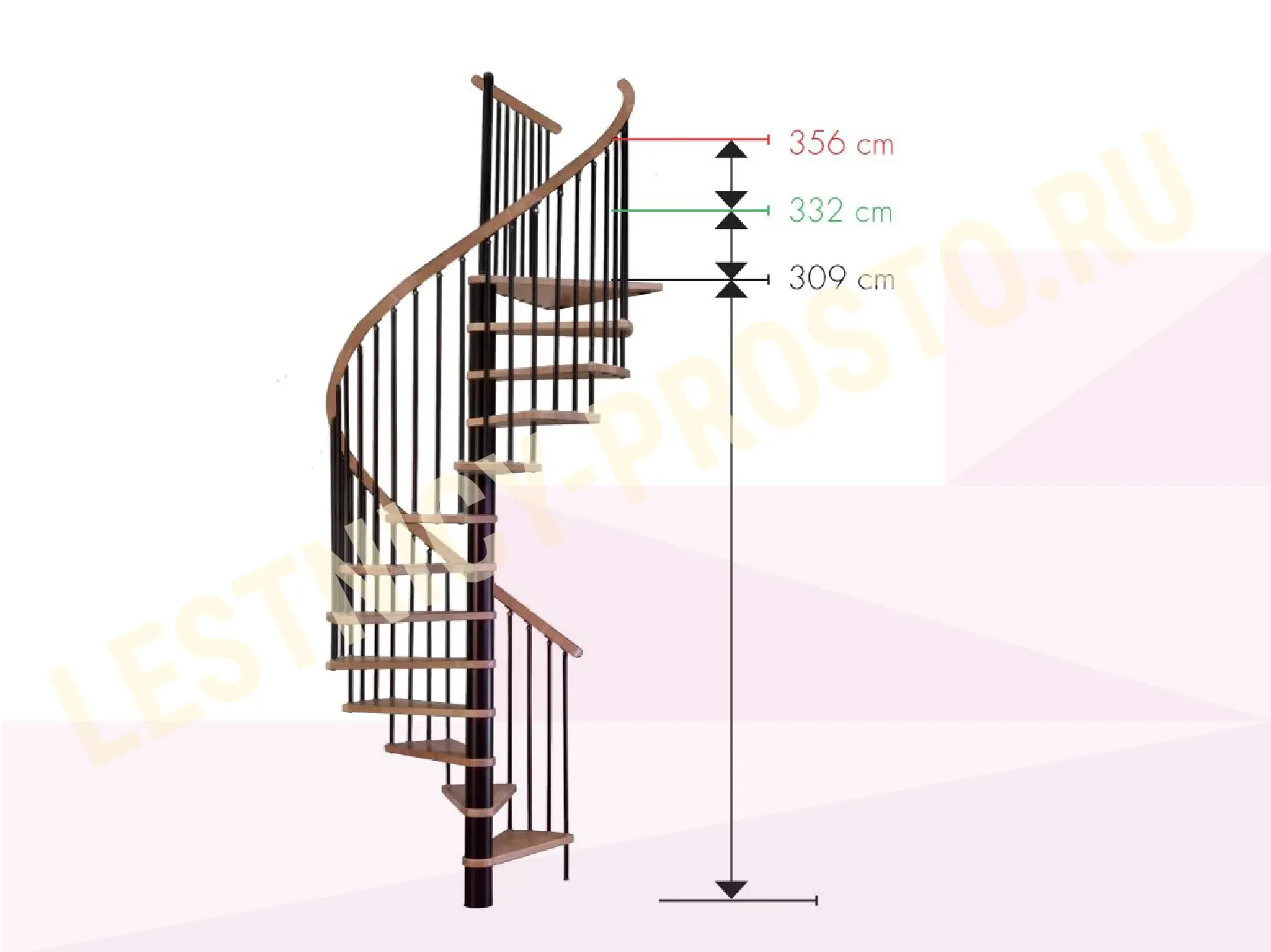 Лестница представлена в двух вариантах: с поворотом направо и с поворотом налево. Благодаря возможности регулировать высоту шага с помощью пластиковых вставок (входят в базовый комплект), высоту лестницы можно варьировать в пределах от 2860 до 3090 мм. Кроме того, купив дополнительную секцию для этой лестницы, можно поднять высоту до 3320 мм.