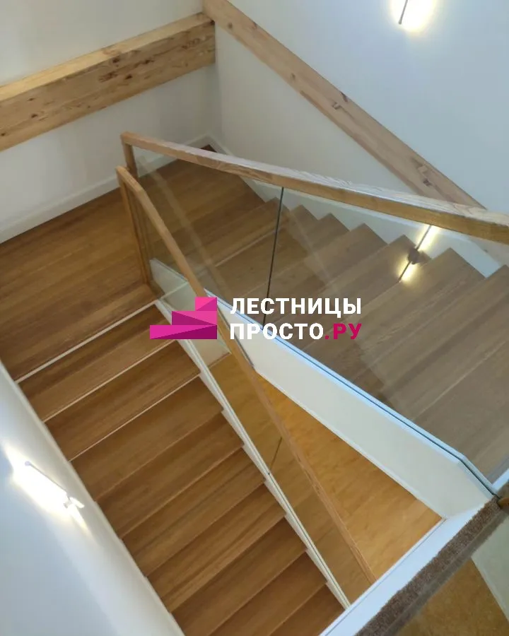 Ограждение Стекло + дуб